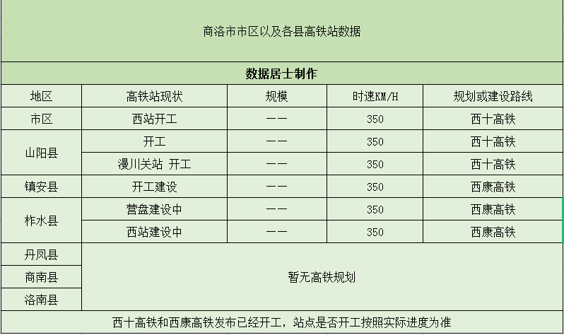 商洛市建設(shè)二條高鐵線路和6個高鐵站,3個縣城設(shè)了5個站點(diǎn)