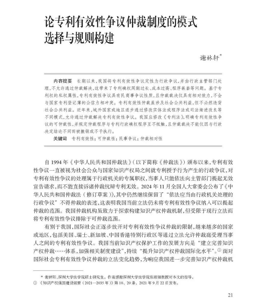 《商事仲裁與調(diào)解》:論專利有效性爭(zhēng)議仲裁制度的模式選擇與規(guī)則構(gòu)建