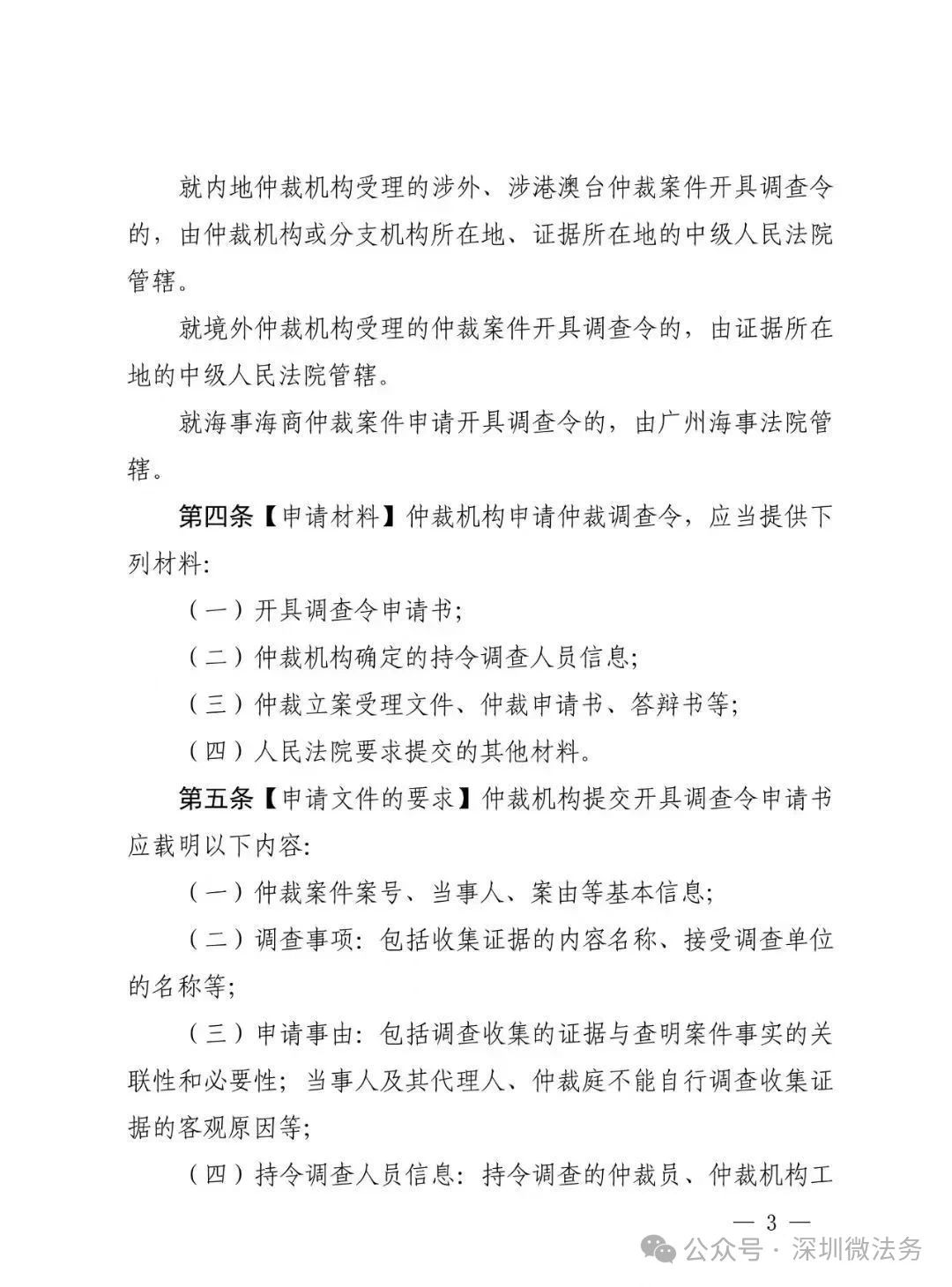 第四條【申請材料】仲裁機構申請仲裁調查令,應當提供下列材料: