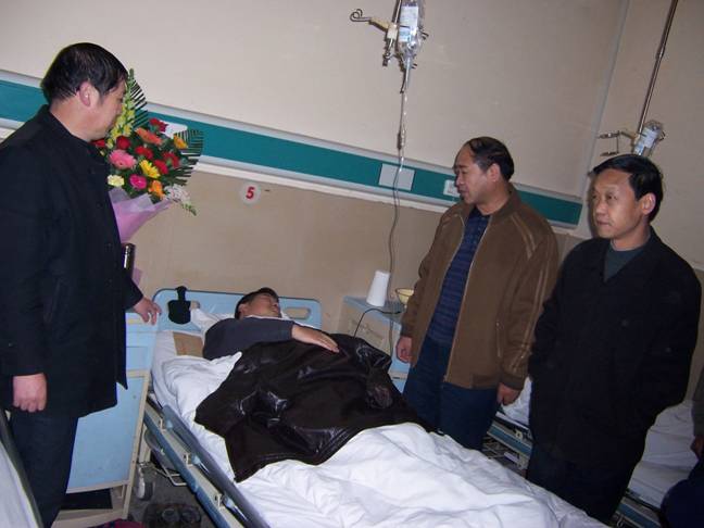 商洛市工商局長魏強(qiáng)(右中)副局長洪智民(右一)看望受傷干部